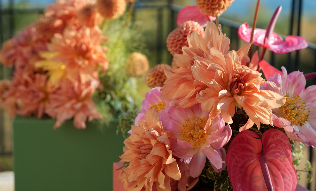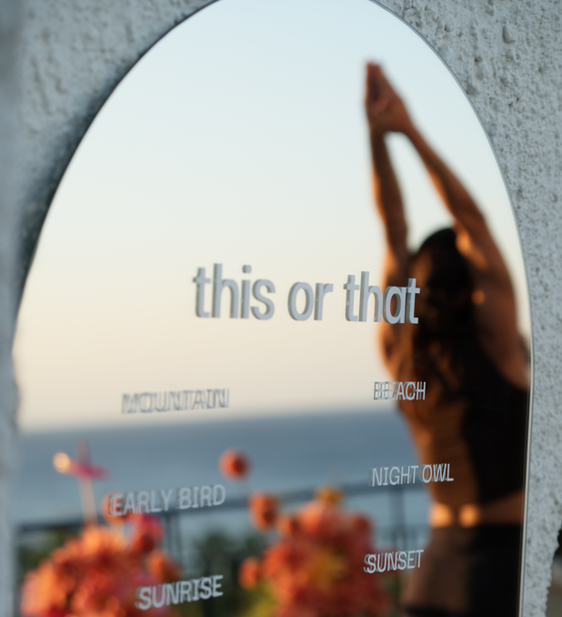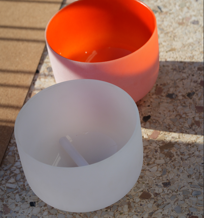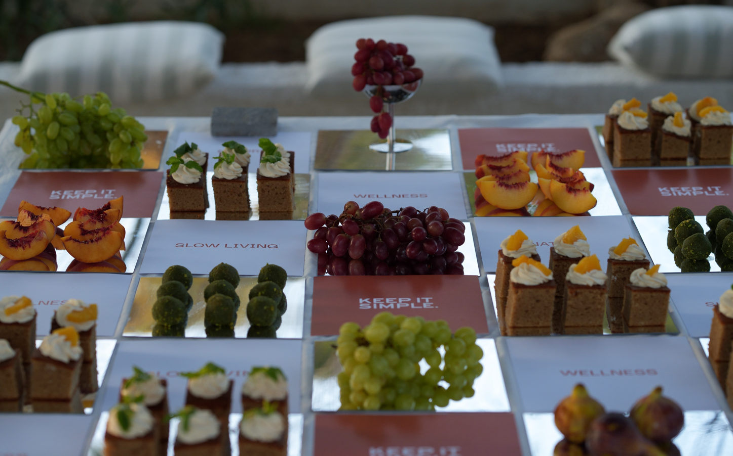 Our most recent event, a curated sunset yoga event. A small group of smiling, open-hearted people met, admiring the sea view, in a garden filled with colourful flowers.